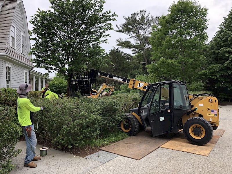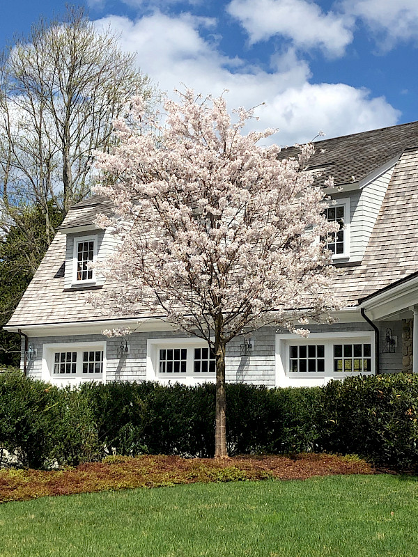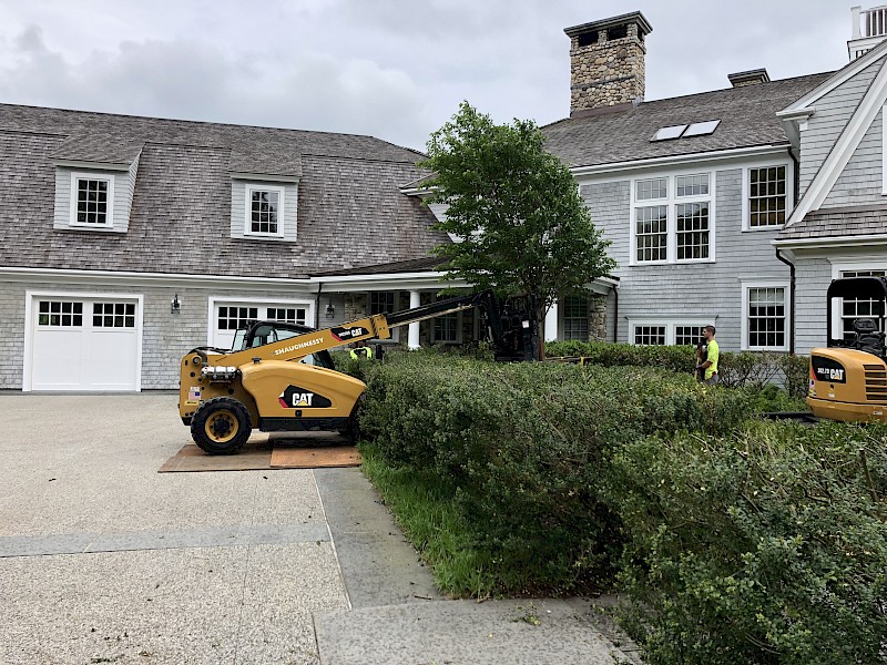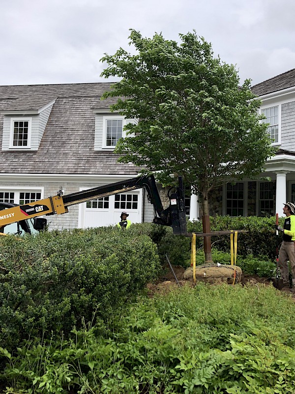 Installation of specimen Prunus 'Akebono' front and center on this beautiful south shore home.