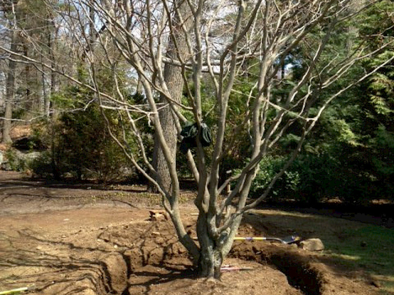 This Chinese Snowball (Styrax obassi) was beloved by the homeowner and was carefully moved on the property.