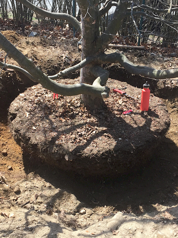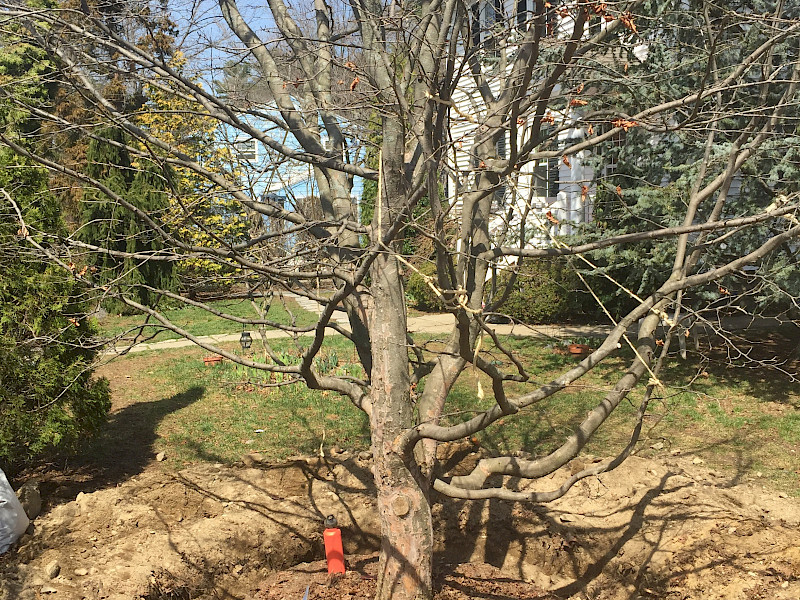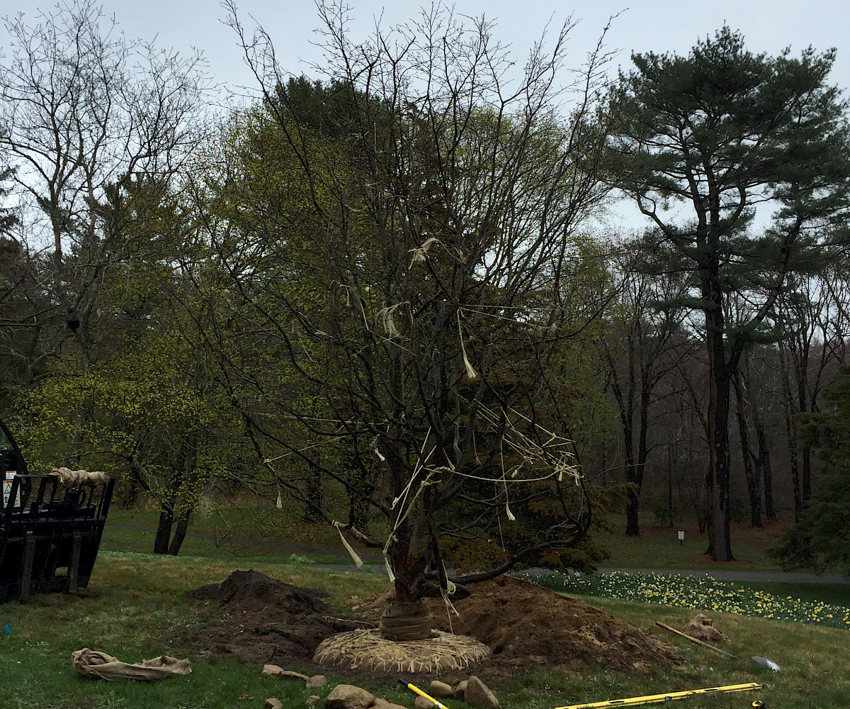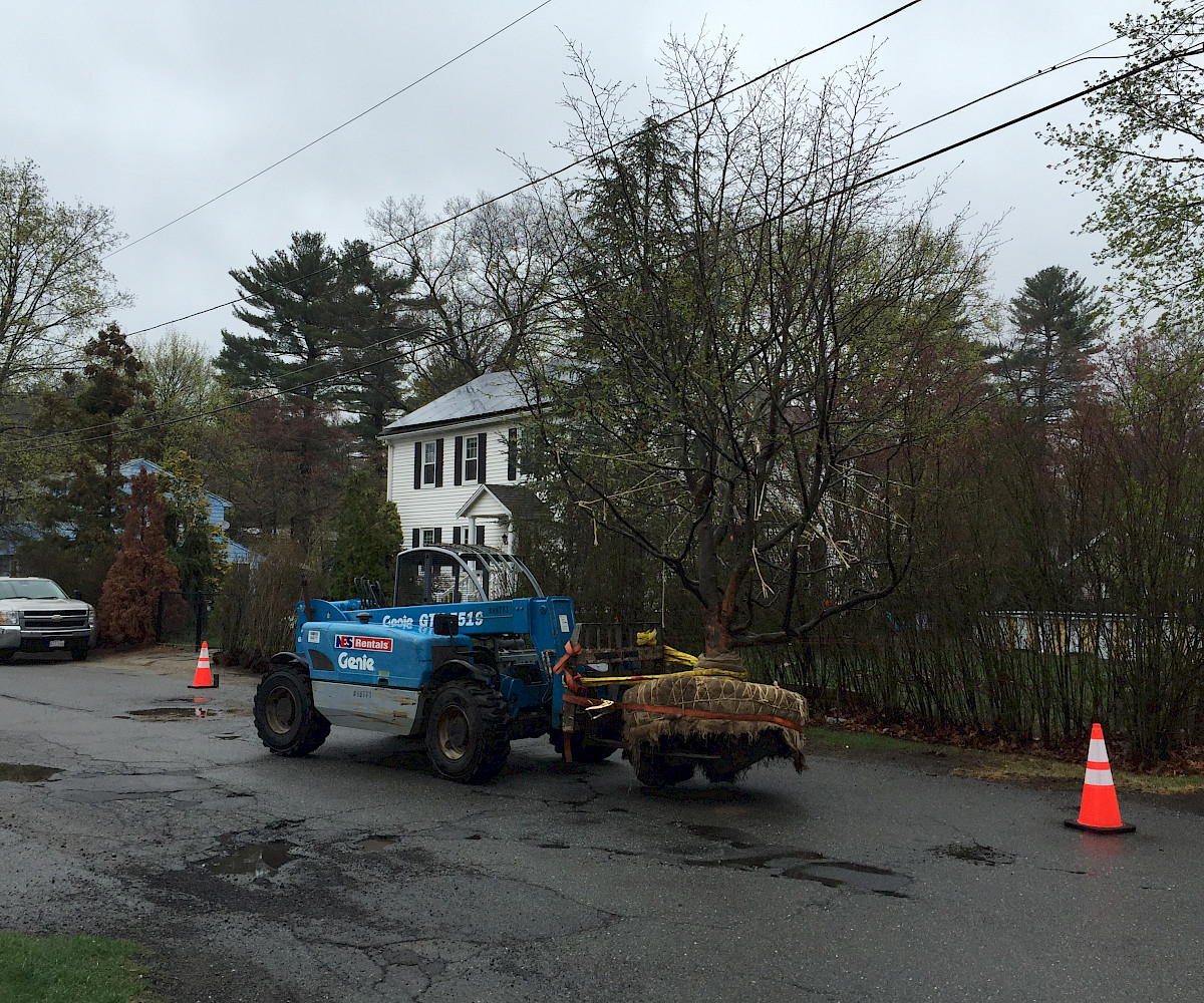 Persian Ironwood transplanted from North Shore to Duxbury, MA.