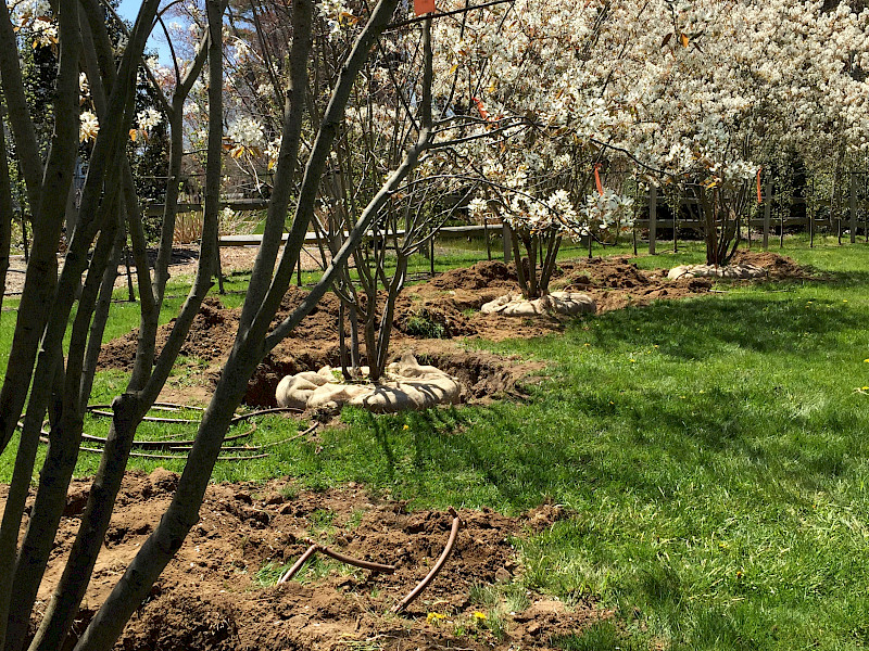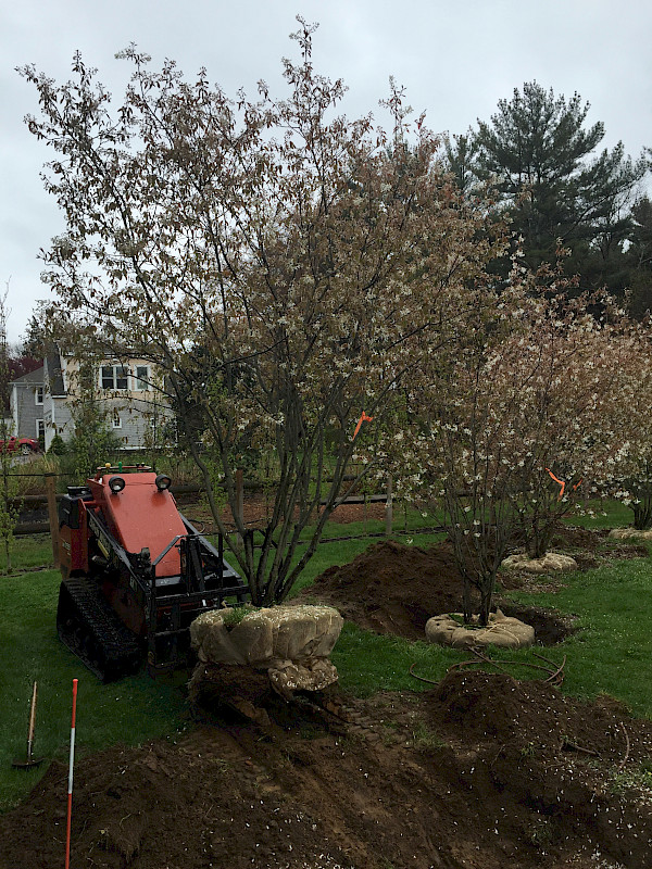 Beautiful Amelanchier canadensis were carefully moved on the property to provide room for a new studio building.