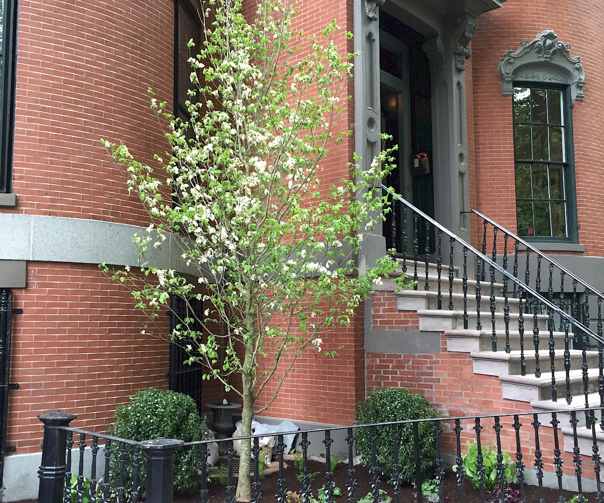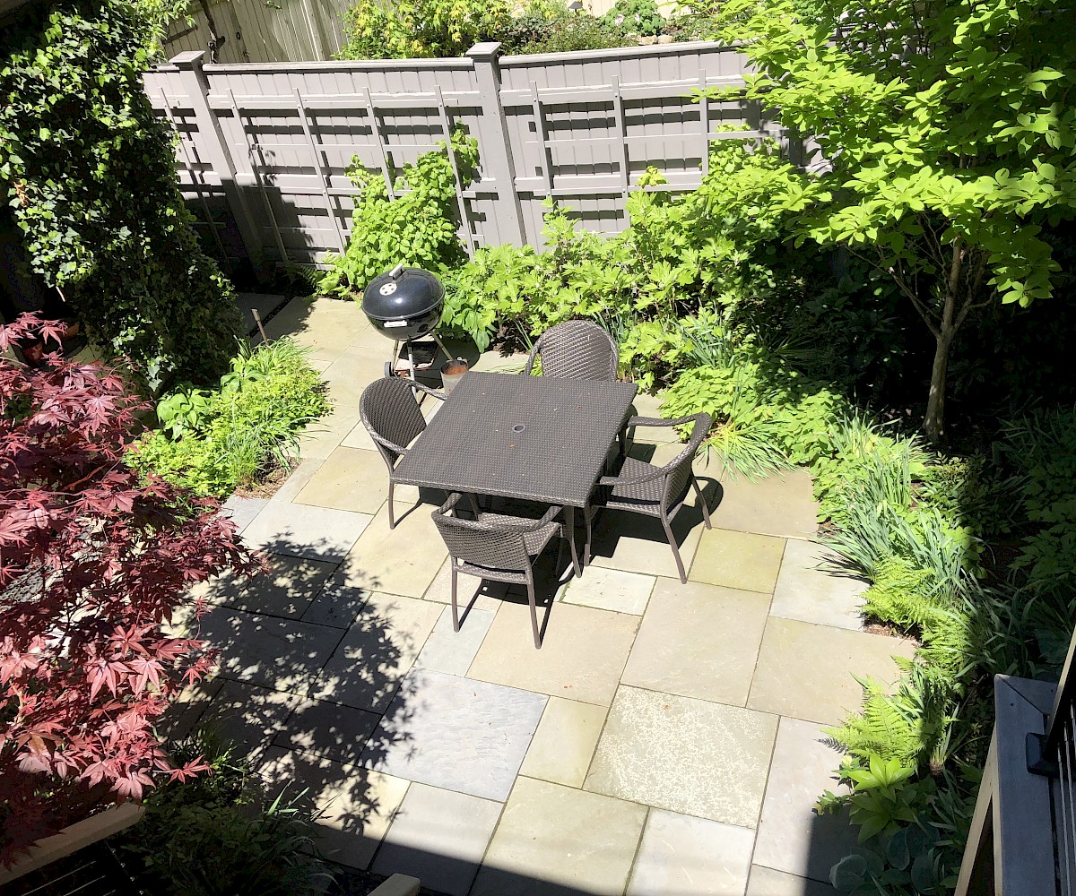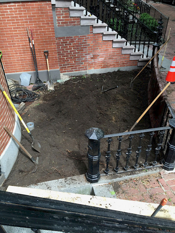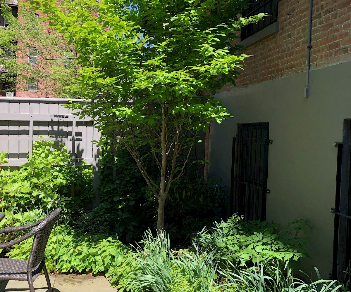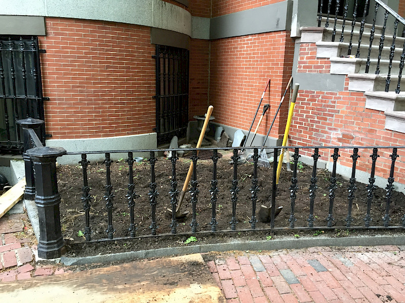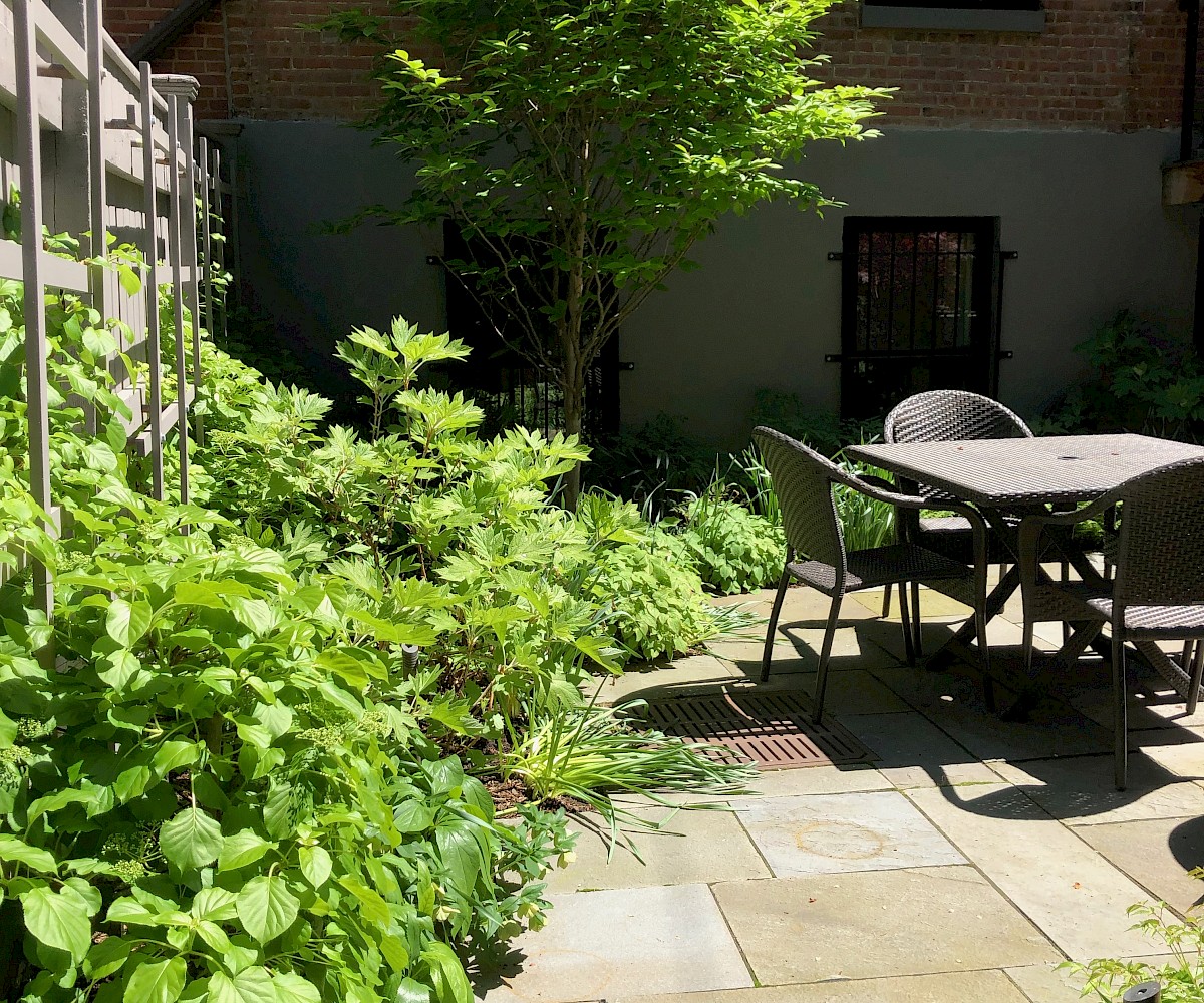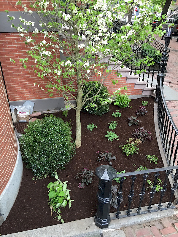 A small sized garden space adds a needed touch of green to this South Boston residence.