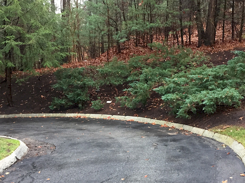 Broken and damaged Junipers were replaced with a series of shrubs that are fast growing and easily rejuvenate, woody shrubs were chosen due to the risk of snow piling in the winter.