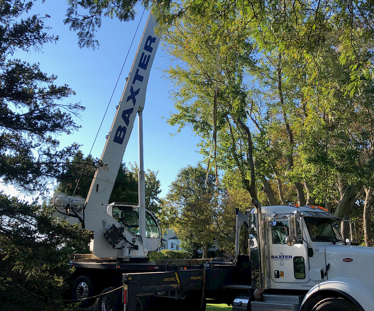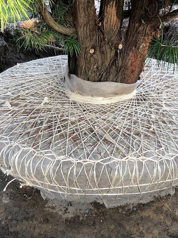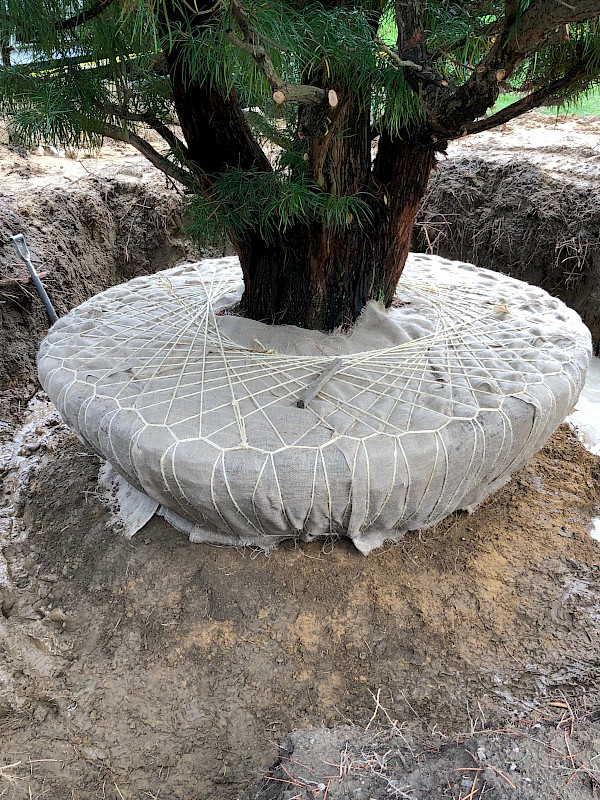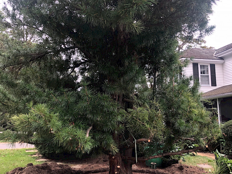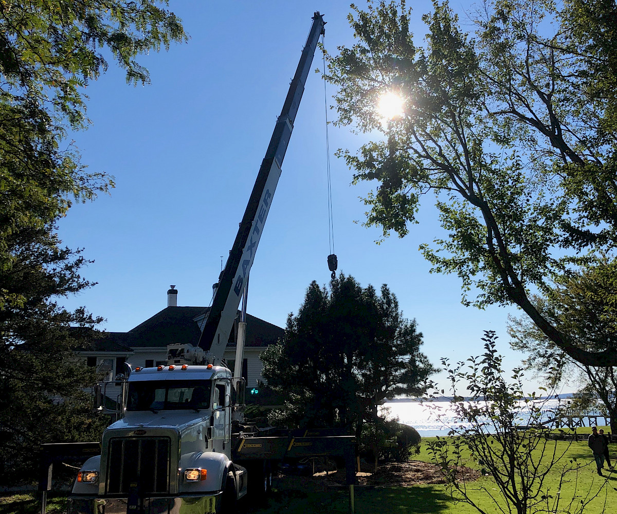 A Mature Umbrella Pine with a long history to the property was carefully hand dug and moved with a crane. The Approximate tree weight during the crane lift was 11,000 pounds.